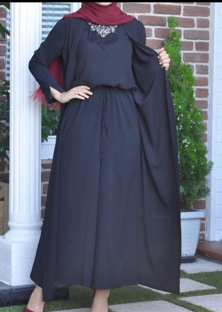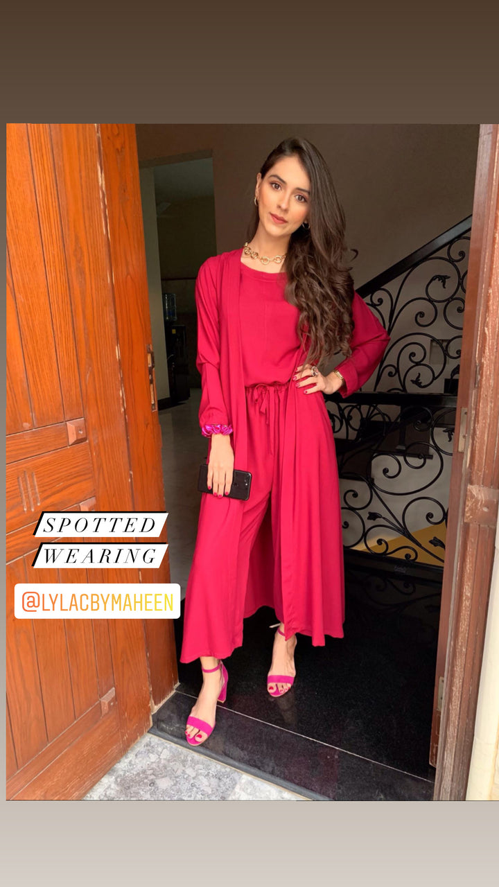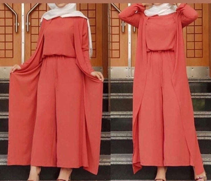 Boat neck style jumpsuit with fixable belt on the waist. Comes with matching upper. Sleeves 22” Shrug and Jumpsuit depends on height. Please select length accordingly.