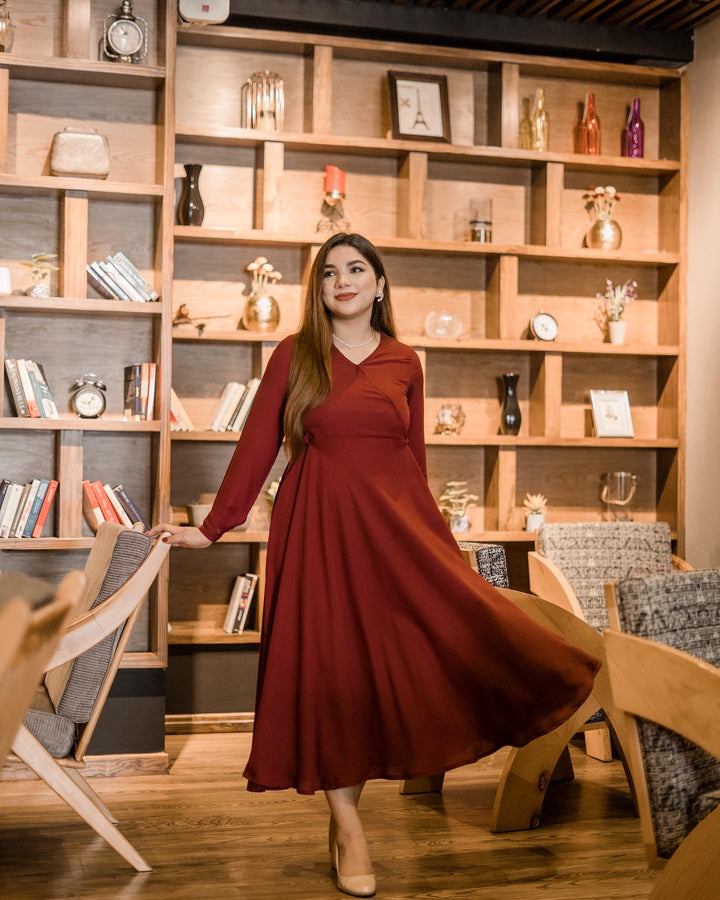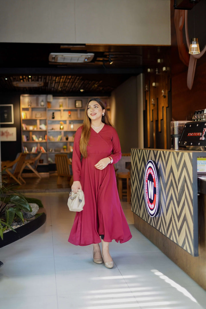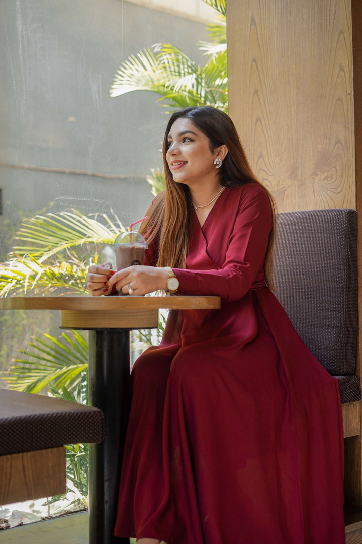 Maroon Overlapped Style Dress