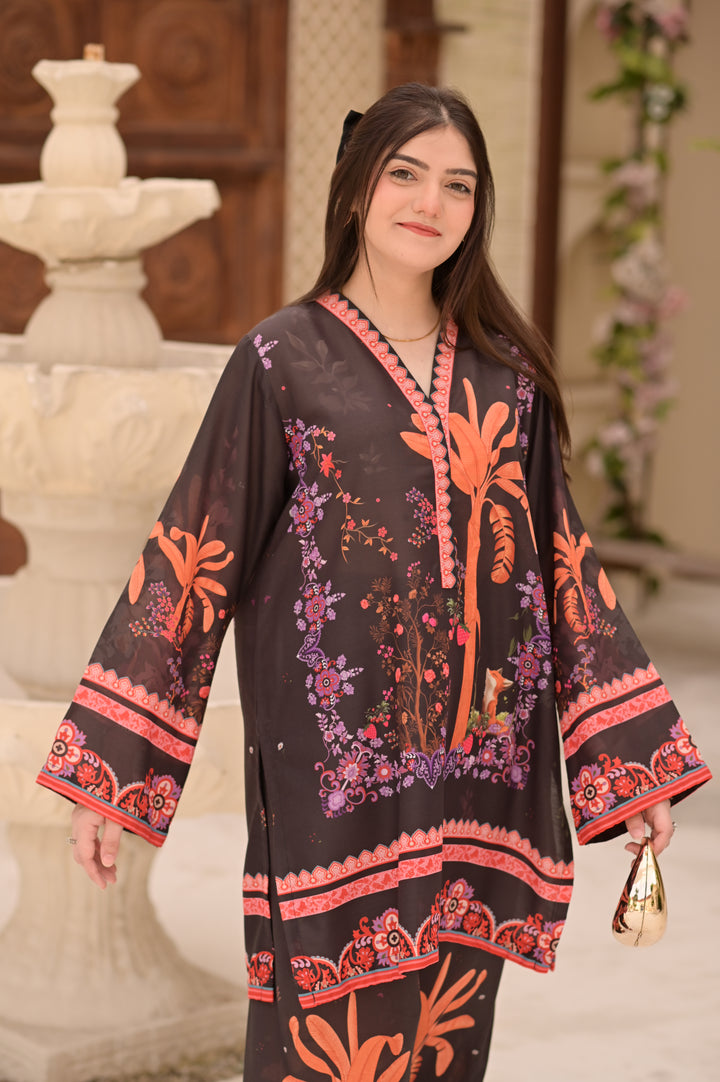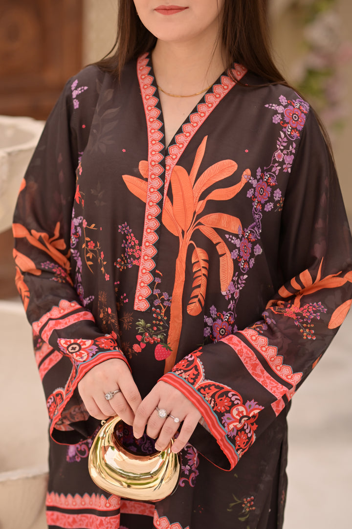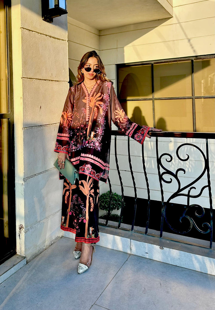 A perfect combo for this fall, bold and basic Black base with Rust Palm tree and floral elements enhancing the pumpkin spice shirt,it is paired with culottes. Its part of our lush Crush collection. Fabric : Cambric( Non Creasy, soft breezy)Shirt Shirt Length: 35”Pants: XS-S-M 37”, L-XL 38"-39”Sleeves: 22”-23”