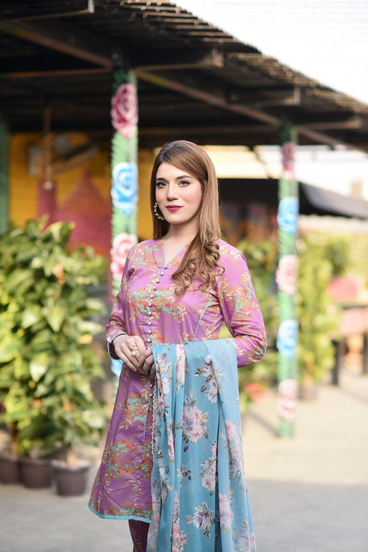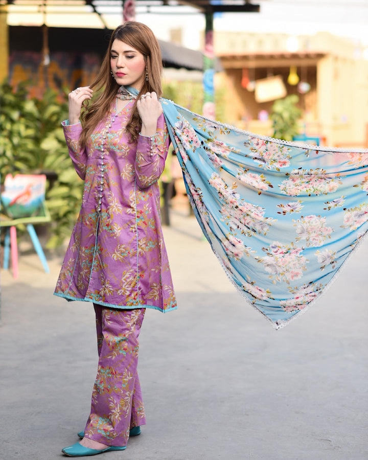 Details : Printed lawn shirt and trousers. Dupatta : Chiffon with Lace detail. Shirt Length: 36” Trouser Length: 40”