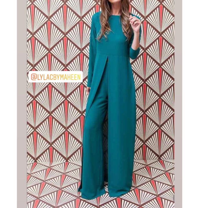 Long Shirt with Boat Neck, Centre Slit Below the Waist, and Matching High Waisted Culottes